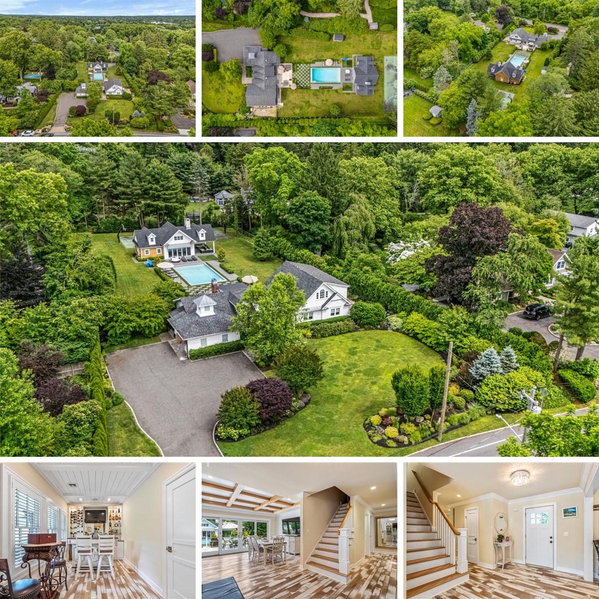 Discover unparalleled luxury in this exquisite 4-bedroom, 5-bathroom estate, situated on over an acre of beautifully flat, professionally landscaped grounds. This private oasis combines sophistication with comfort, offering a seamless blend of indoor and outdoor living. The expansive layout and open floor plan is perfect for entertaining, boasting soaring ceilings and abundant natural light. Lower Level: Features a separate entrance to the backyard, offering more recreational space. Outdoor Amenities: Enjoy a game of basketball or your private court, or take a dip in the gunite heated pool. The pool house and outdoor fireplace with a covered patio make this space ideal for gatherings. This property is designed for the entertainer and seeks an incredible home offering both privacy and convenience. Schedule your private tour today and experience the epitome of luxury living.